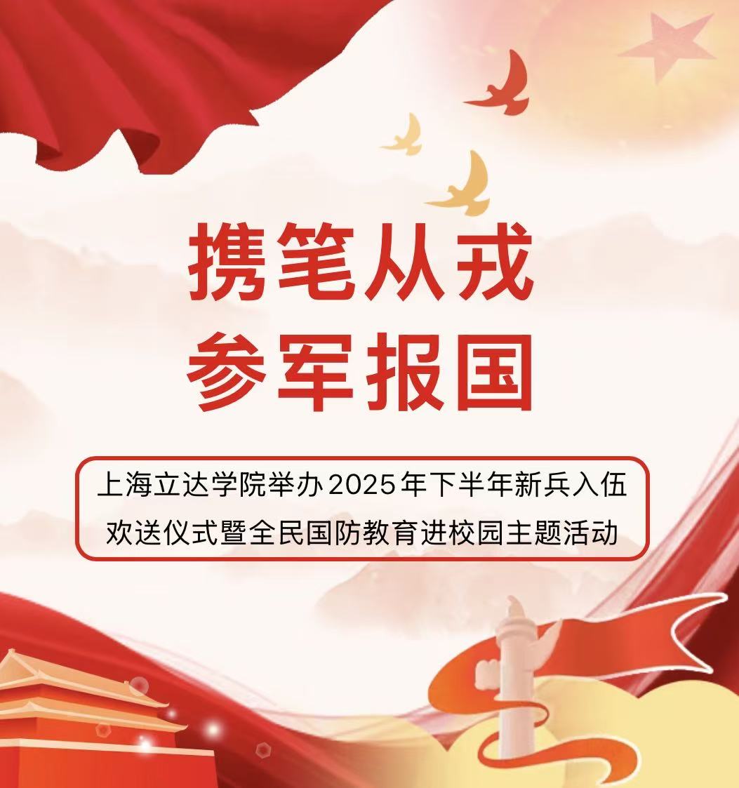 上海立达学院举办2025年下半年新兵入伍欢送仪式暨全民国防教育进校园主题活动。