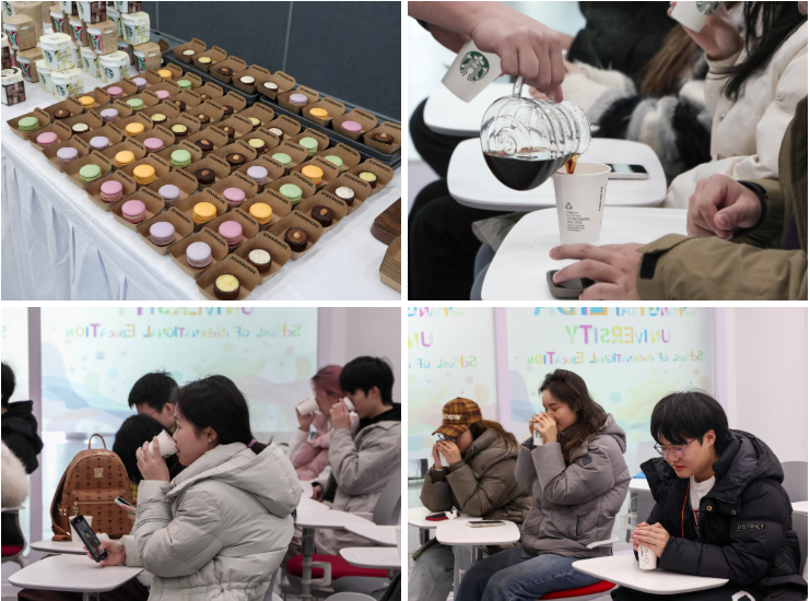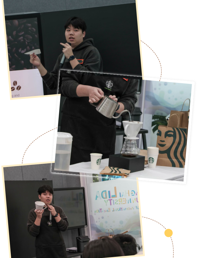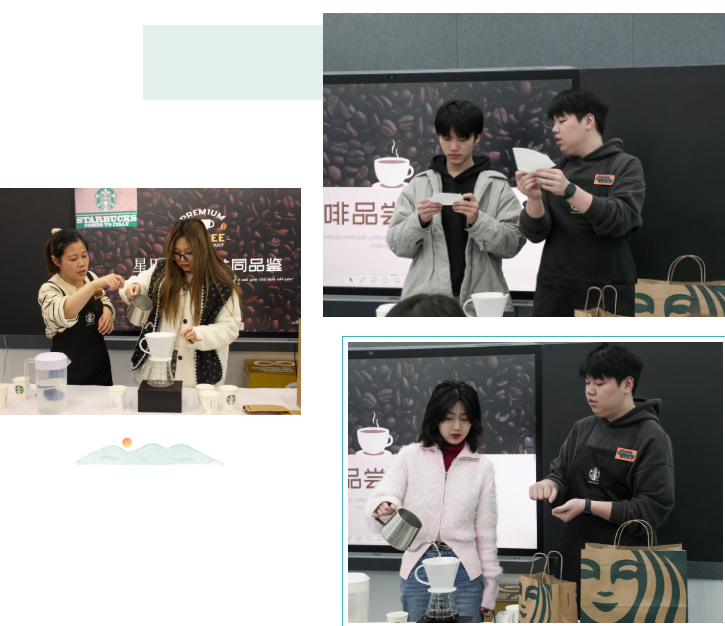 活动伊始,来自星巴克的专业咖啡师闪亮登场。他们以生动的讲解,为同学们揭开咖啡世界的神秘面纱。从咖啡豆的起源,到咖啡在全球的种植分布,再到不同烘焙程度对咖啡风味的影响,每一个知识点都如同一颗颗闪耀的珍珠,串联起同学们对咖啡的认知。咖啡师详细介绍了咖啡豆的分类,像阿拉比卡的细腻酸度与丰富果香,罗布斯塔的浓烈醇厚,让同学们对即将品尝的咖啡充满期待。