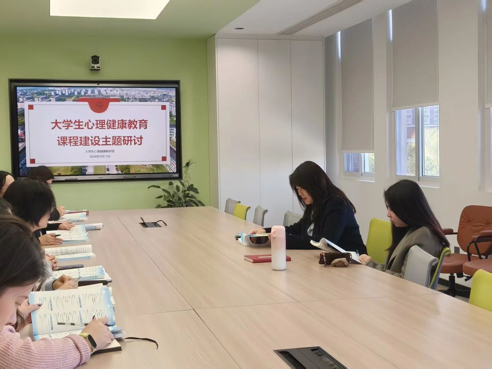 首场研讨聚焦16课时线下课程互动与体验模式建设。郭霖副校长带领团队梳理教学大纲,确立“以学生为主体”的改革方向:实行课堂分组教学,将最后一节课设为小组成果展示,学生以“积极心理短视频”呈现学习收获。课程大幅增加学生主动参与模块,充分体现我校积极心理建设特色。